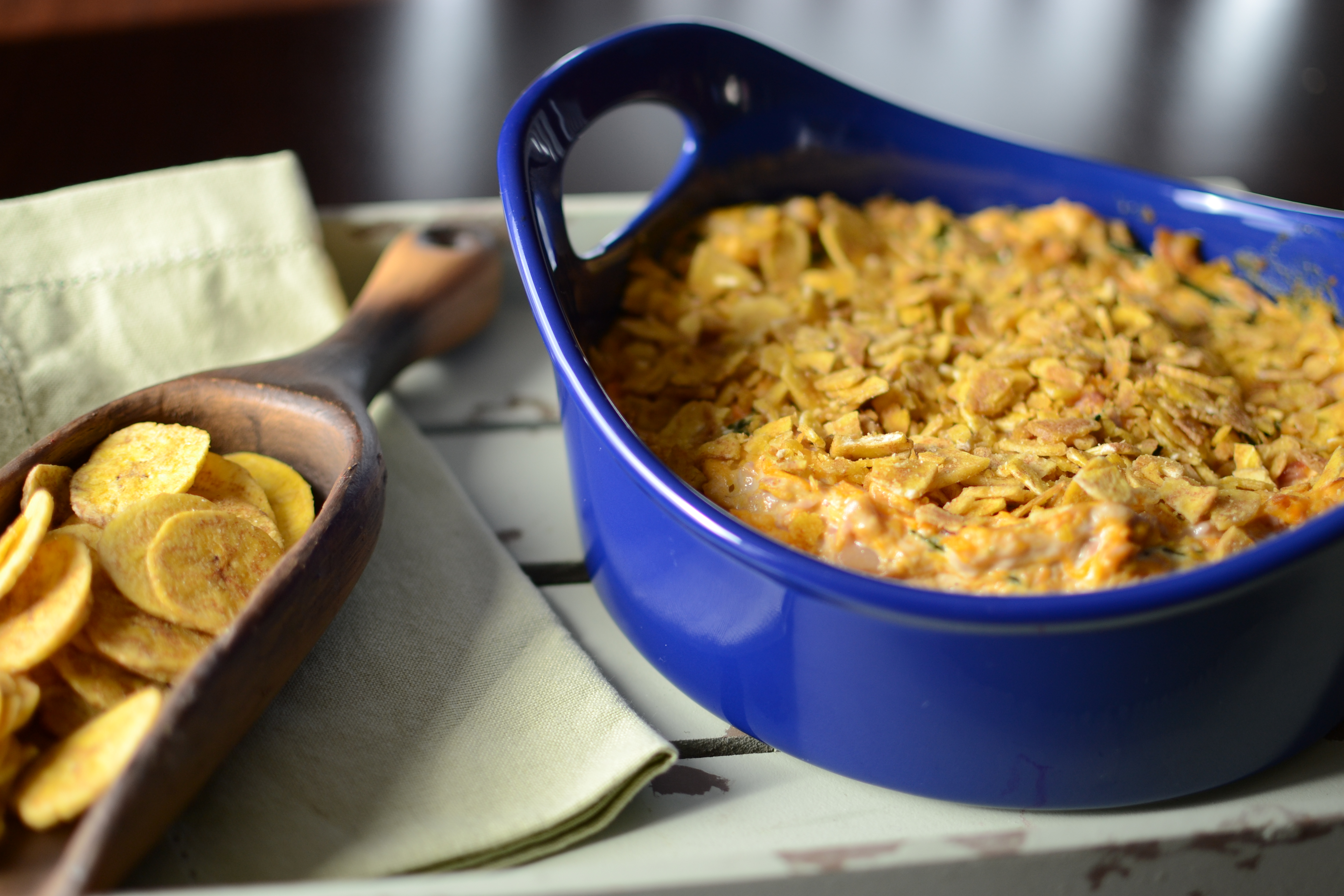 - In a separate bowl mix tuna, mayo, mustard. After the squash is done and the spinach, onions, and garlic are tender and fragrant. Mix everything in with the tuna mix. Then place in a round or square casserole dish, top with crushed plantain chips (leave out for Whole 30), and bake at 350 for 15 minutes.